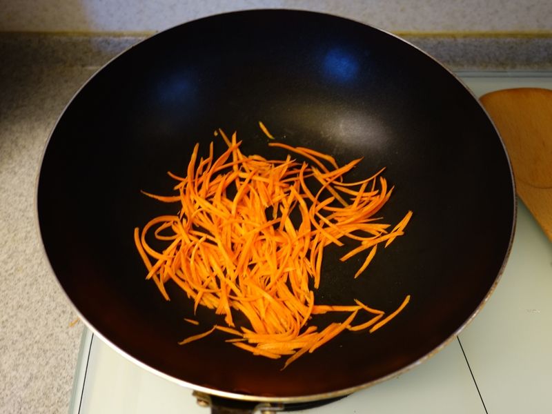 於炒鍋內加入攪拌好的蛋液,並拌炒均勻即可。