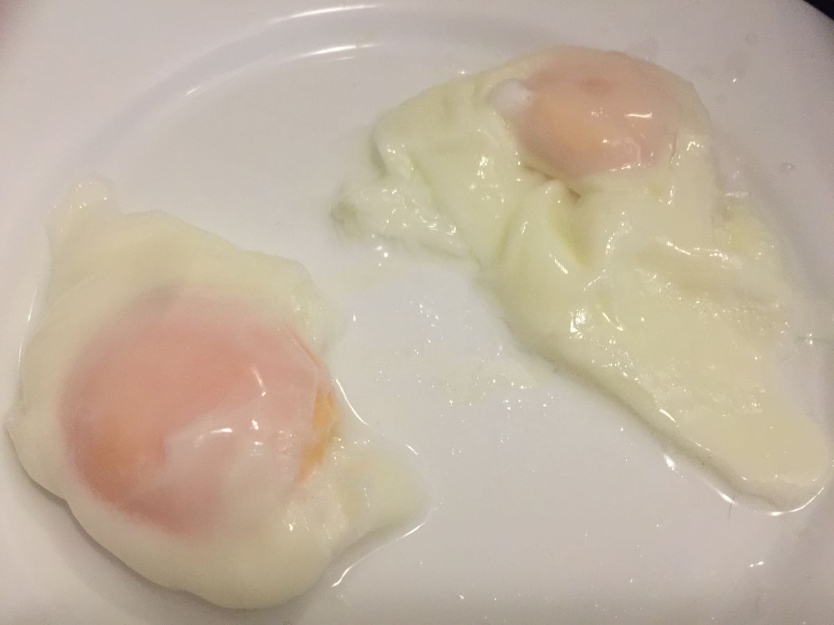 將煮麵水倒掉,重新放水加鹽,水滾後轉小火煮水波蛋,一定要小火,因為火太大蛋會不能凝的漂亮,如果怕不好凝固,可以在水中加一點醋!煮好瀝乾備用