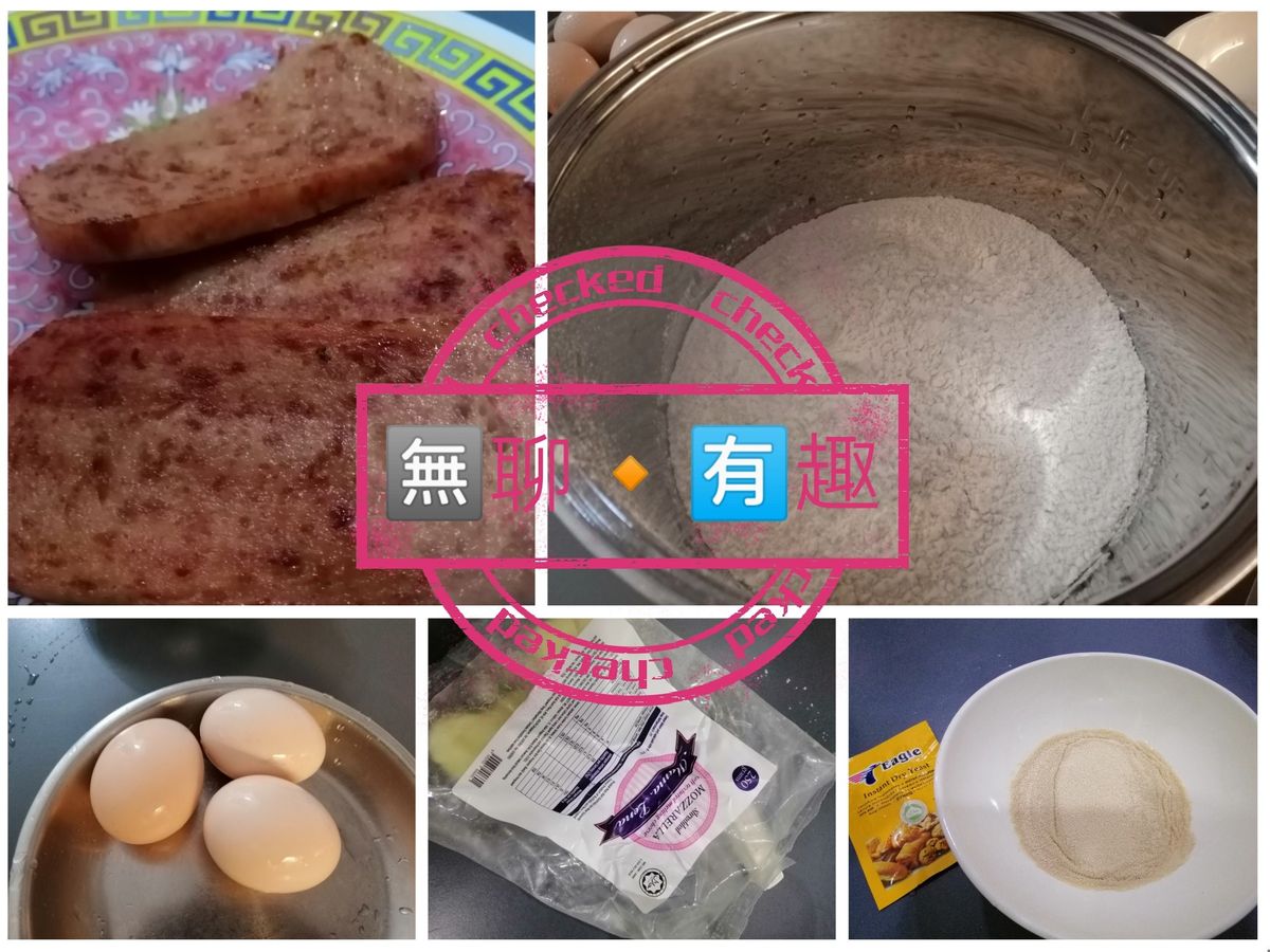 準備食材 把午餐肉切片煎好備用 用大碗盛好面粉