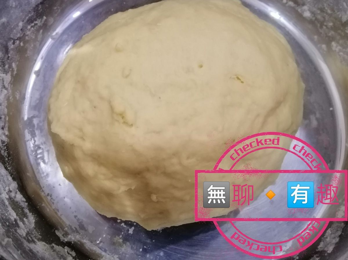 現在才是真正的搓麵。 在麵糰中弄個小洞加入少許黃油,然後蹂捏折磨這麵糰大約15分鐘。