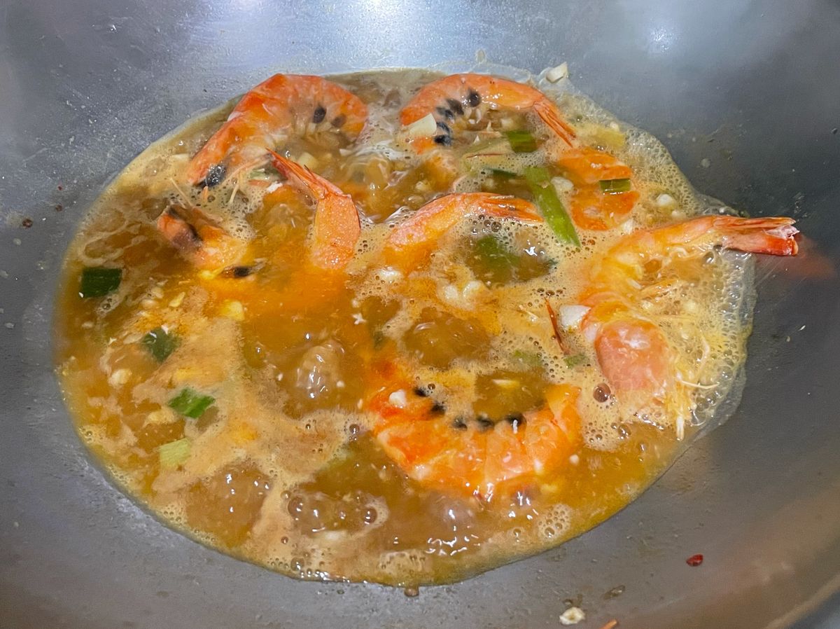 fors 185 食譜 296 粉絲 追蹤 鮮蝦粉絲 描述 利用鮮蝦殼熬出精華XD 37 說讚 1 一起做 讚收藏分享分享FacebookLINE複製連結列印 食材 白蝦 1盒 蒜頭 2-3瓣 蔥花 適量 粉絲 3份 豆瓣醬 3匙 蠔油 適量 步驟 1.蝦子頭先去剪掉,開背去泥腸,加點米酒去腥味。 2.蒜頭和蔥切末。 3.粉絲泡水。 熱鍋熱油後先炒蝦子到半熟,撈起備用 鍋子不用洗,直接下一點油,加入蒜末和蔥花及蝦頭殼 再加入兩碗水,等水滾約15分鐘後,可以把蝦頭殼取出 再放蝦子 加入粉絲和豆瓣醬、蠔油 非常下飯的鮮蝦粉絲,連小朋友都超愛的呢!❤️ 6,709 瀏覽 2021/06/16 發表